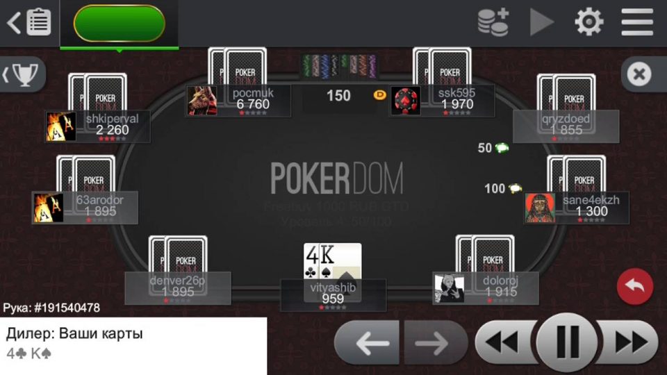 Оператор PokerDom – первый русскоязычный портал для юзеров из России, позволяющий скачать Техас покер на реальные деньги. Главным преимуществом проекта является то, что он поддерживает рубли. Можно играть и на американские доллары, но каждый клиент вправе сам решать, на какую валюту ему лучше всего играть.
