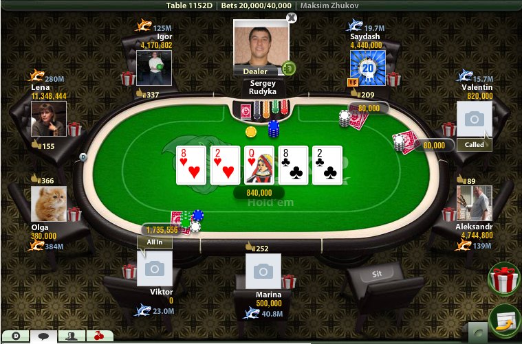 Перед началом покерной партии 2 участника игры делают ставки, которые называются большой и малый блайнд. Сама партия проходит в 4 этапа, на каждом из которых игрокам выдаются карты, и они вступают в торги. Победу одерживает тот, кто собрал карточную комбинацию сильнее, чем соперники, кстати, всего их 10.