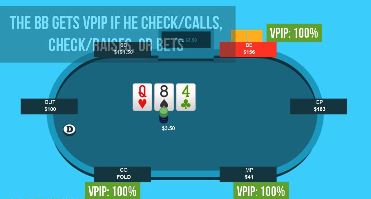 Если расшифровать VPIP, то он обозначает «добровольно внесенные деньги в банк». Если рассматривать показатели более подробно, то становится ясно, что VPIP обозначает активные действия игроки, вычисляет лимп, определяет вероятность удачной ставки и повышения, коллирование.
