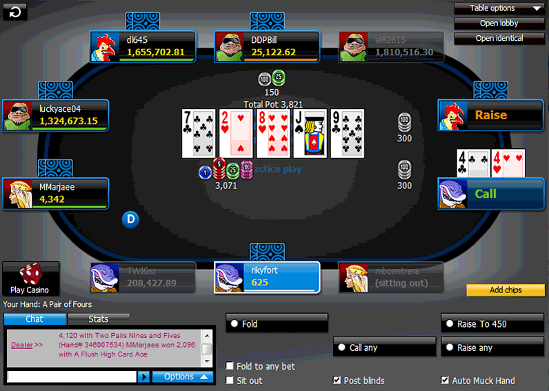 - у пользователя нет постоянных соперников, так как игроки всегда перемещаются между несколькими столами; позиция за игровым столом меняется не поочередно. Покеристу может прийти очередь ставить блайнд раньше, чем он предполагал или, наоборот, позже. Но, несмотря на это, все игроки ставят блайнды в равных долях;