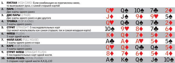 Комбинации карт в покере по возрастанию в таблицах и картинках