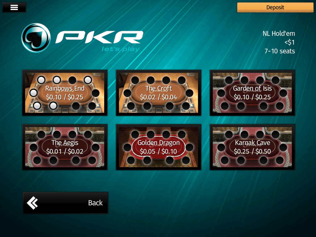 Играть онлайн на PKR Poker можно всего лишь в несколько вариантов покера. В комнате доступны такие игры, как Омаха и Омаха Хай-Лоу, а также Техасский Холдем. За самые дешевые блайнды придется заплатить 0,02-0,04 доллара. Опытным специалистам много игр доступно на NL100-200, не редко можно встретить и высшие лимиты.