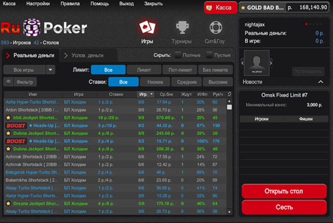 Чтобы сыграть в Омаху, Семикарточный Стад, Техасский Холдем, Американу или 32 карточный Дро покер, нужно скачать бесплатно Ru Poker. На постоянной основе тут устраиваются турниры. Их общая численность ежедневно превышает два десятка состязаний. Большая часть соревнований проходит в наиболее подходящее для отечественных клиентов время.