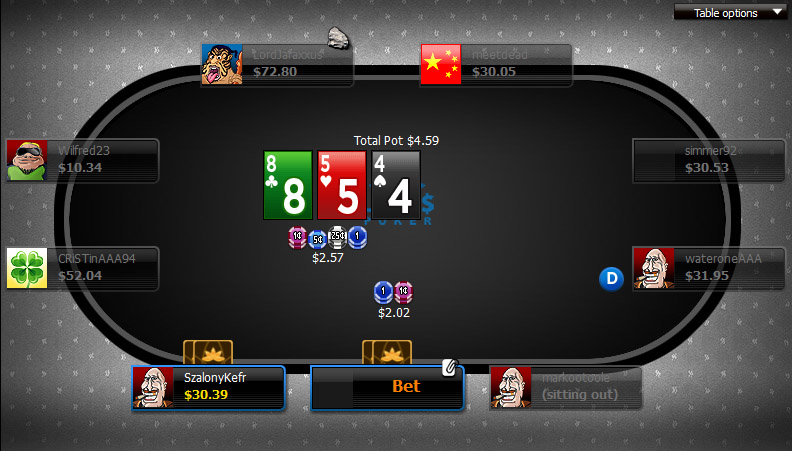 Если же на столе три первых элемента будут «слабыми» (например, Тройка, Восьмерка, Пятерка), то вероятнее всего раздача не дотянет до шоудауна и кому-то из игроков удастся победить в ней не вскрываясь.