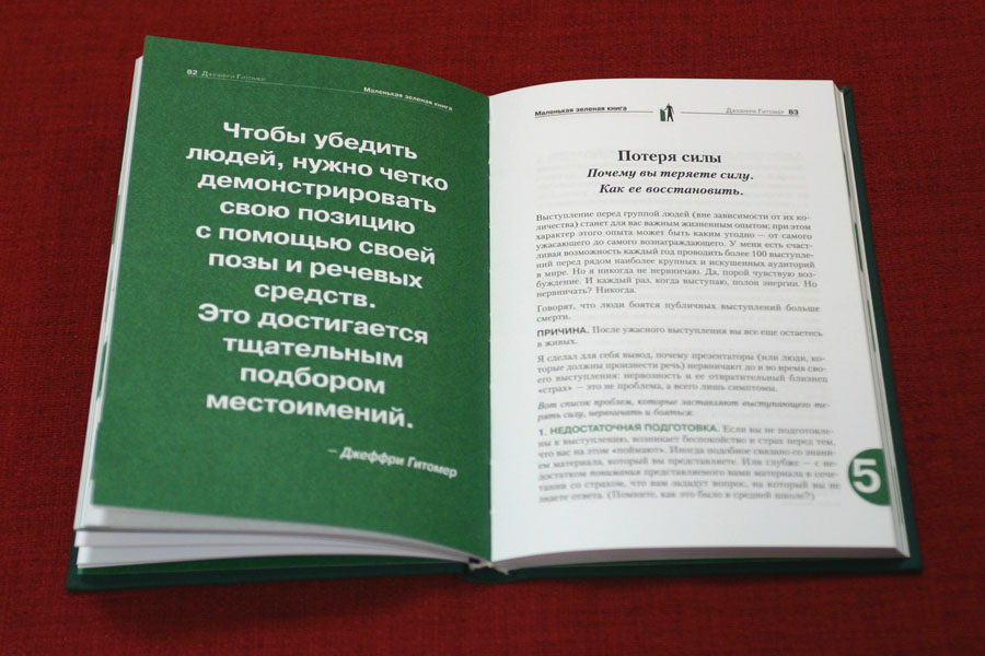 «Маленькая зеленая книга». Это весьма известное среди покеристов пособие написал Фил Гордон. Учебник начинается тем, что излагает основные правила покера. Затем идут дополнительные разделы, развенчивающие загадки успешных раскладов и стратегий игры. Гордон уверен в том, что если игрок, который никогда раньше вживую не видел даже карт для игры в покер, возьмет за основу приведенную в его труде информацию, то он обязательно достигнет неповторимых высот в игре. Эту весьма содержательную книгу обязан прочесть каждый человек, решивший посвятить покеру некоторую часть своей жизни. Несмотря на свое масштабное содержание, том состоит из небольшого количества страниц.